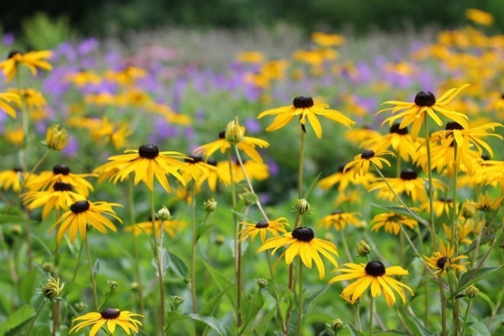 Sok évelő virág a júliusi forró napsütésben virágzik, jól tűrik a szárazságot és a meleget; a nyári virágágyások elmaradhatatlan díszei.