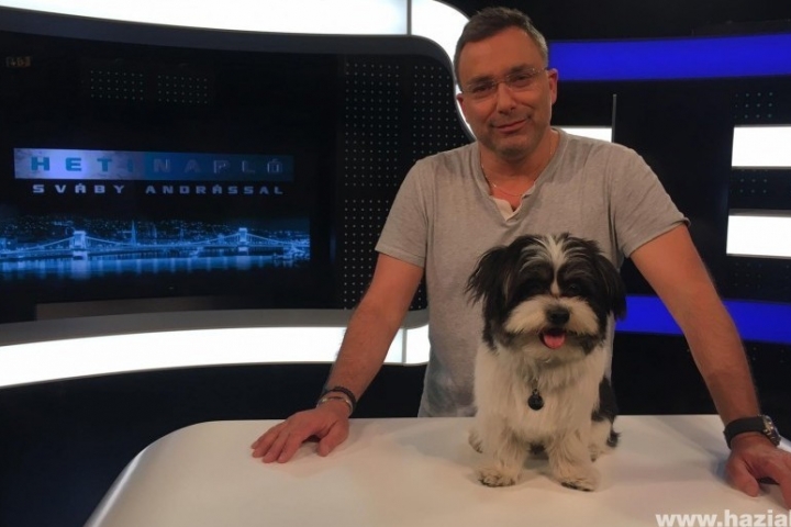 A magyar tévézés egyik leghíresebb kutyája, Karcsika, aki rendszeresen részt is vesz Sváby Andrással a forgatásokon.