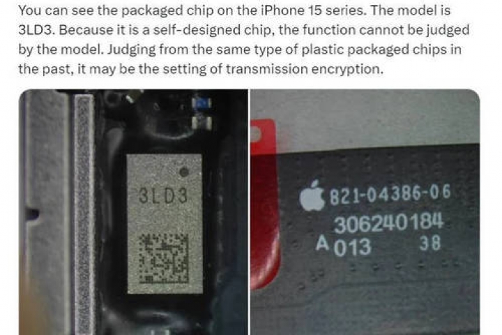 Az X-en közzétett kiszivárgott képek látszólag az iPhone 15 Plus töltőelemeit mutatják. A képen feltűnik, egy Apple által készített 3LD3 chip. Bár Majin Bu nem teljesen biztos a házon belüli chip funkcionalitásában, elmélete szerint adattitkosításra szolgálhat.