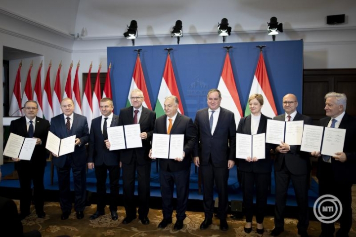 Történelmi léptékű a bérmegállapodás, mert oda helyezi a minimálbért, ami méltó Magyarországhoz - ezt mondta Orbán Viktor a Karmelita kolostorban, miután aláírta a hároméves bérmegállapodást.